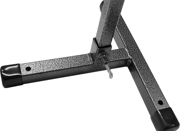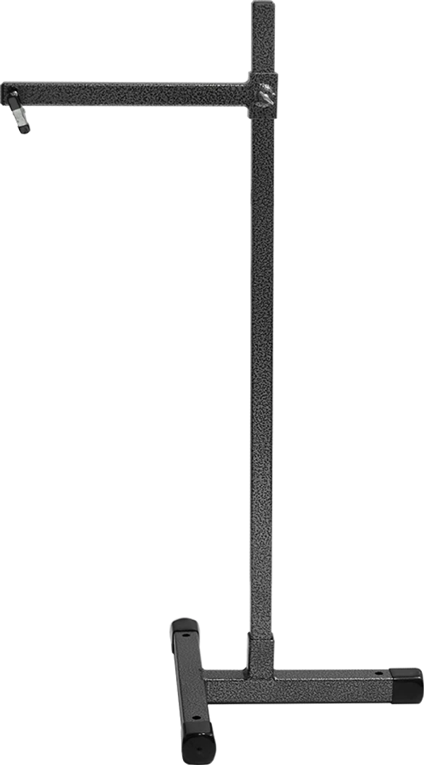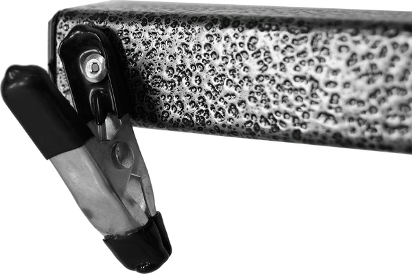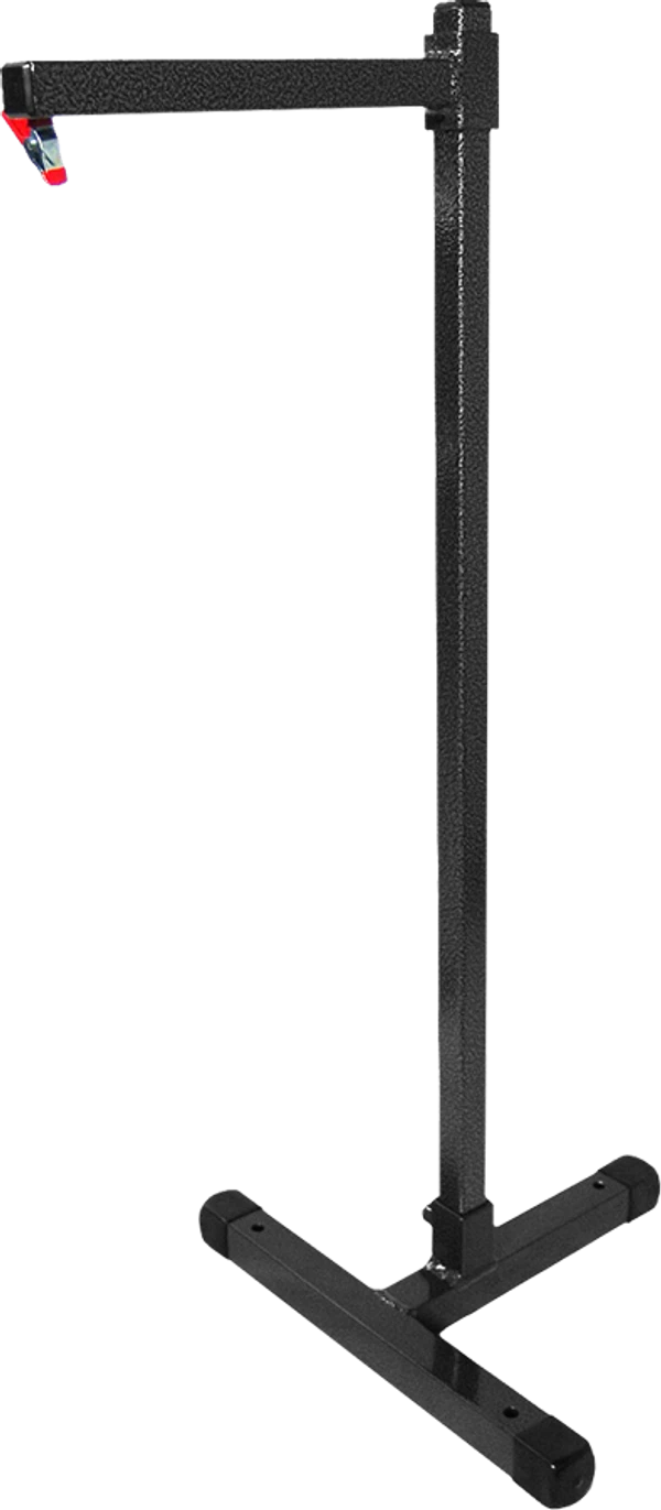 The top bar has a riveted, spring loaded clip from which you can hang the training reward. The height of the clip can be adjusted up and down, up to 32″ high. Now, taller or shorter dogs can use the ball tree and have it set for their working height.