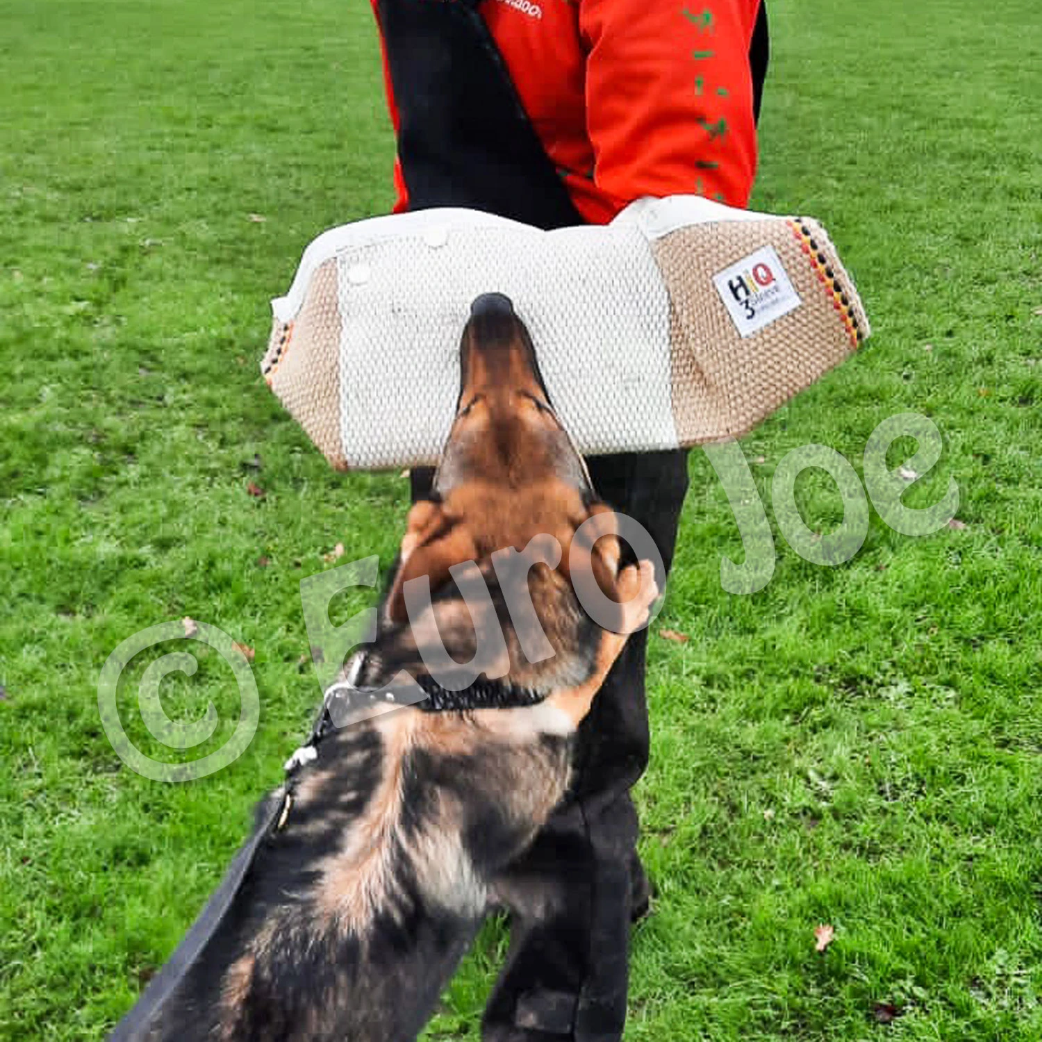 The HiQ3 sleeve is ideal for teaching young dogs a good, full bite. This sleeve has a cover that is extremely strong and handles dog bites very well. The white area makes it clear to the dog and handler where the right place is to bite.