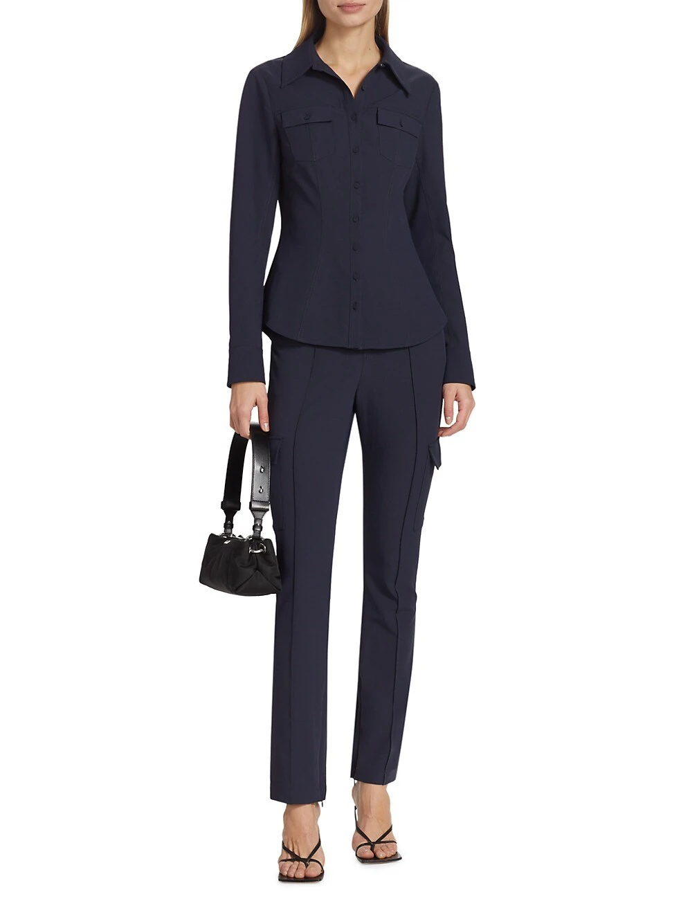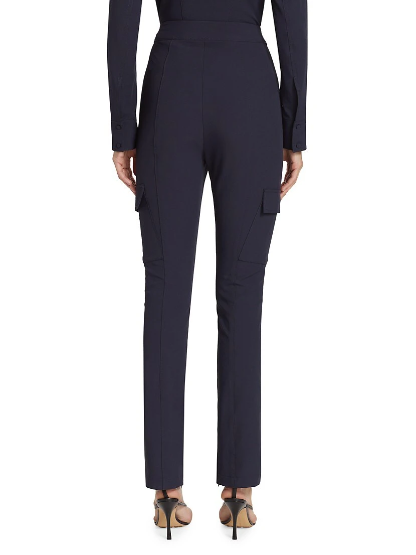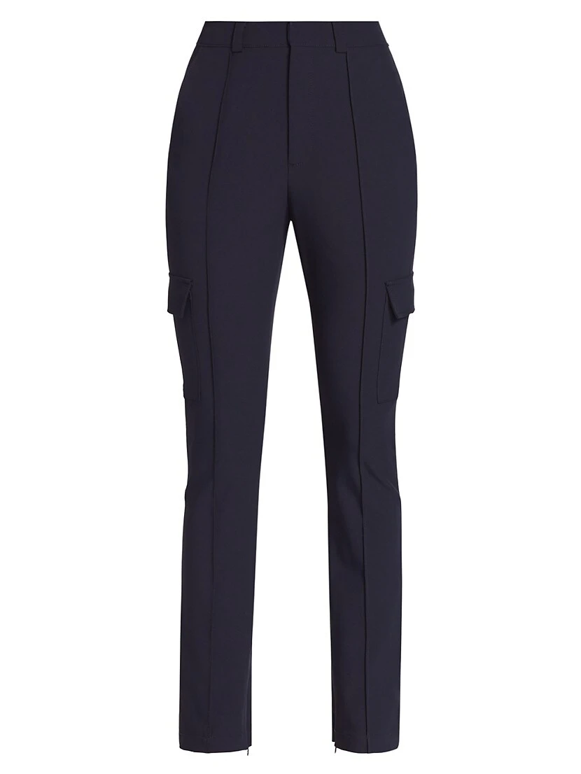 Cinq à Sept’s Norah pants feature a high-rise, slim silhouette. The look is complete with cargo pockets, front seam details, and zip hems.