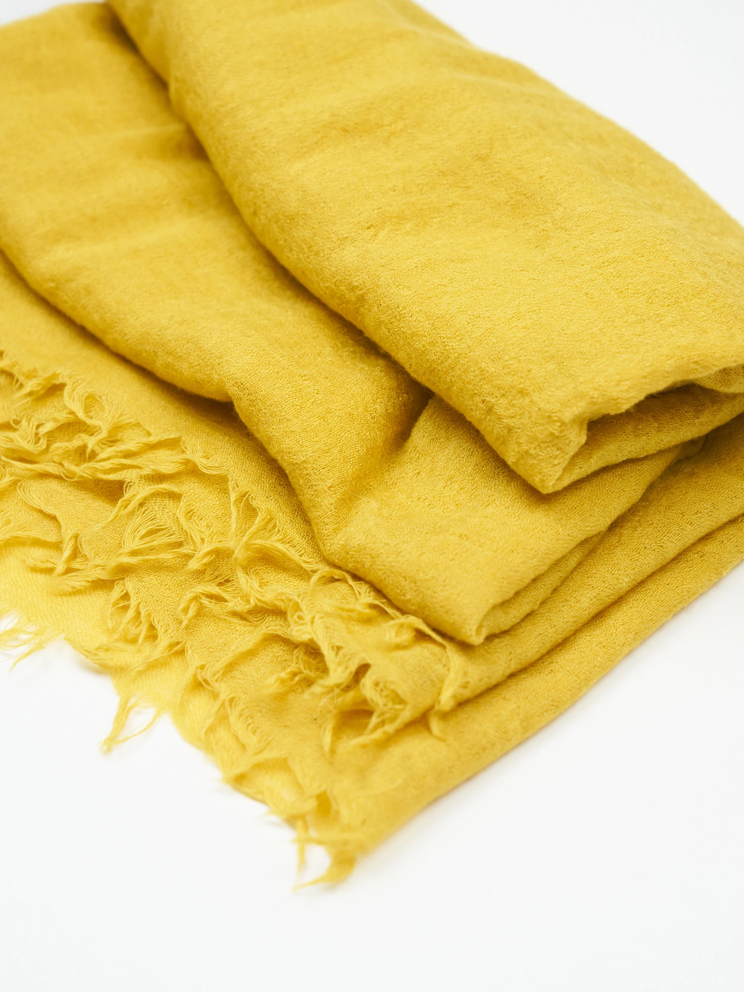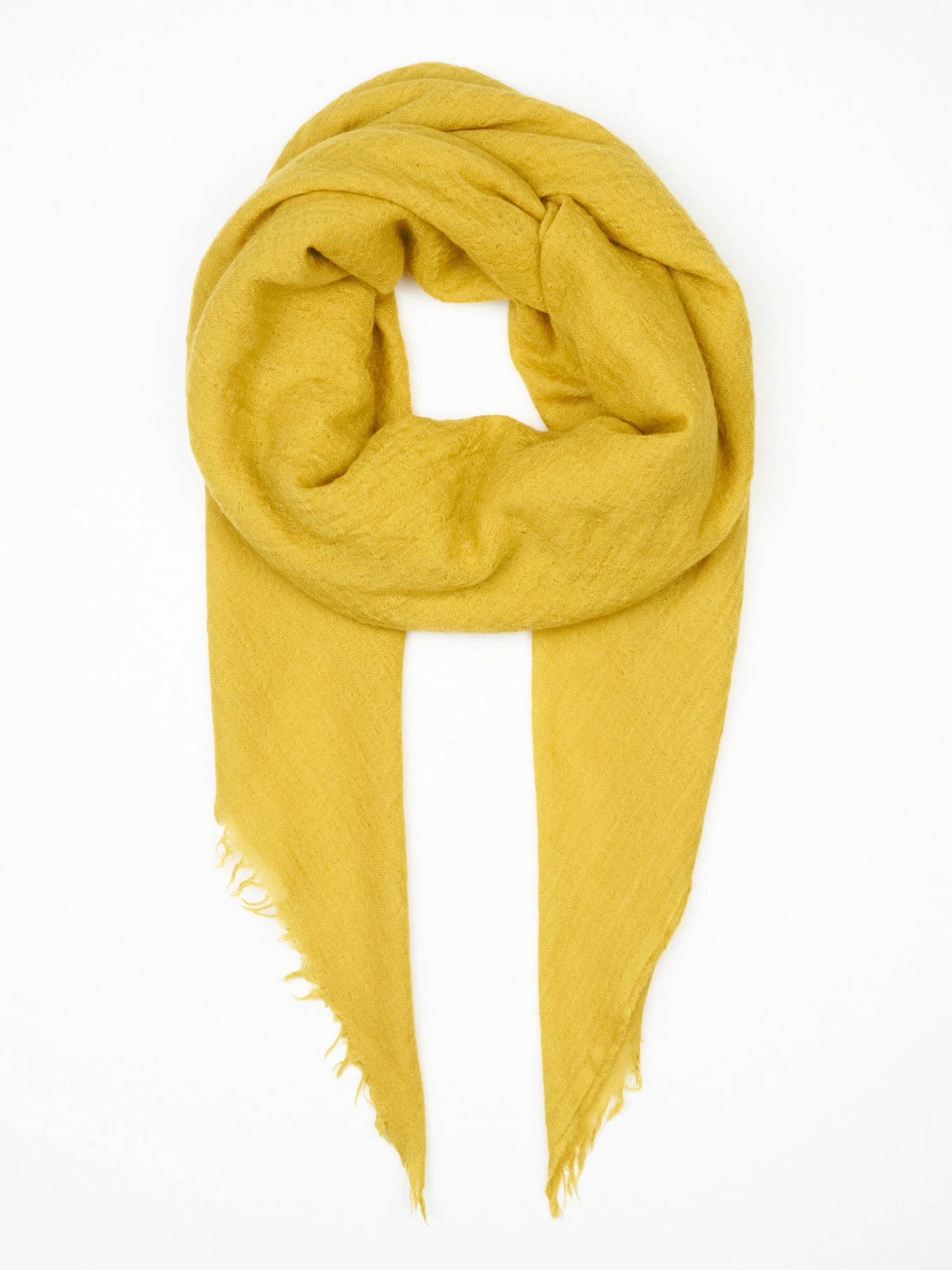 A cashmere, wool, and silk-blend scarf with fringe edges.