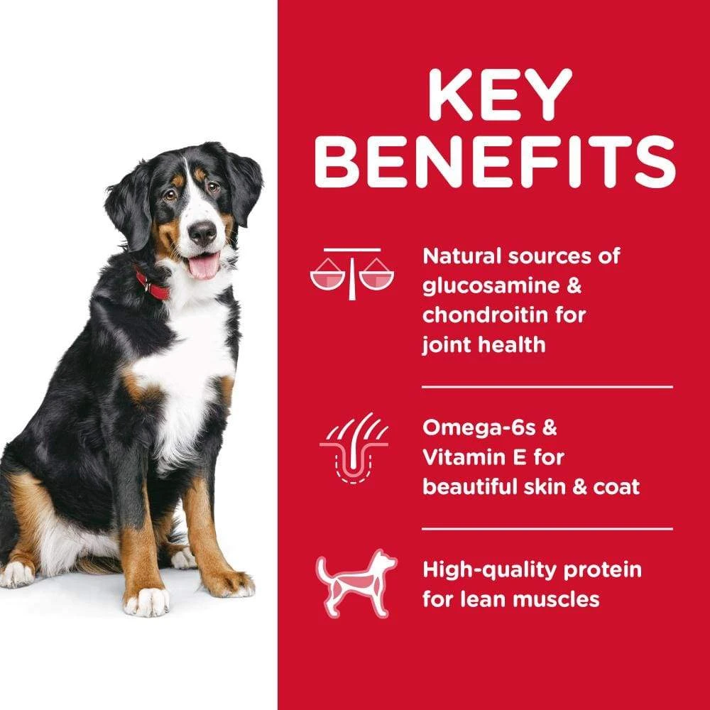 Big dogs have their own set of nutrition needs, so Hill’s® Science Diet® Large Breed adult dog food is specially formulated to fuel the energy needs of large breed dogs during their prime, while offering a savory lamb flavor. Made with high-quality, easy-to digest-ingredients, this food for fully grown large dogs supports the building of lean muscle with high-quality protein, as well as glucosamine and chondroitin for healthy joints & mobility. A balanced blend of omega-6s and vitamin E nourishes your dog’s skin for a healthy, shiny coat. There’s more to love with the new look of Science Diet®. Some of our products also have new names, new kibble shapes & new formulas.