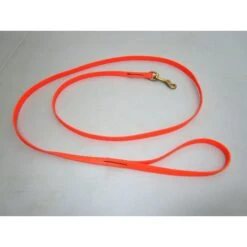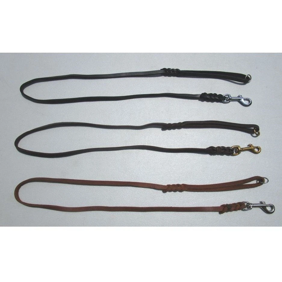 Short leash made of finest German soft leather. 3 ft. 2in. long. 2/5 inch wide. Braided ends. With hand loop. Strong but not bulky.