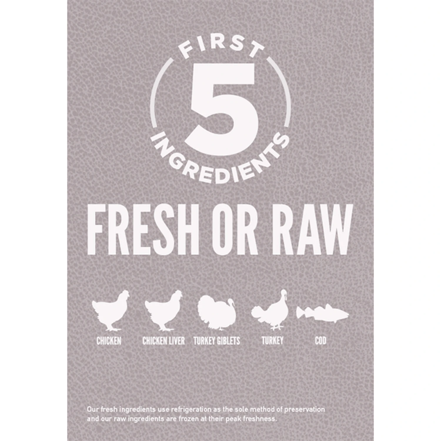 Every recipe of Orijen Grain-Free Dog Food starts with the highest quality meats sourced from regional farming partners delivered fresh daily. These include meat, organ meat and cartilage, giving your dog a natural, whole prey diet. Added to this are nutrient dense, antioxidant rich fruits and vegetables and a botanical blend of herbs which support overall health and bridge the gap between complete nutrition and physical well-being.
