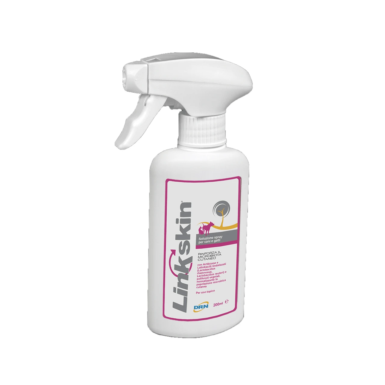 Linkskin is a unique spray that supports the skin barrier by rebalancing the skin microbiome and restoring skin homeostasis, reducing itch and redness caused by environmental and food sensitivities. Linkskin Spray contains tyndallised bacteria to help support a healthy skin microbiome and local immune system to help maintain healthy skin. It does not stain the coat and can be used in conjunction with Linkskin Tablets.