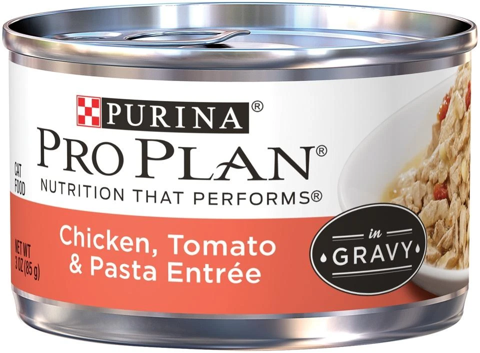 Water sufficient for processing, chicken, liver, wheat gluten, tomatoes, meat by-products, pasta (wheat flour, egg whites), corn starch-modified, turkey, artificial and natural flavors, soy flour, salt, tricalcium phosphate, potassium chloride, added color, taurine, choline chloride, Vitamin E supplement, thiamine mononitrate, zinc sulfate, ferrous sulfate, niacin, calcium pantothenate, Vitamin A supplement, menadione sodium bisulfite complex (source of Vitamin K activity), copper sulfate, manganese sulfate, pyridoxine hydrochloride, riboflavin supplement, Vitamin B-12 supplement, biotin, folic acid, Vitamin D-3 supplement, and potassium iodide