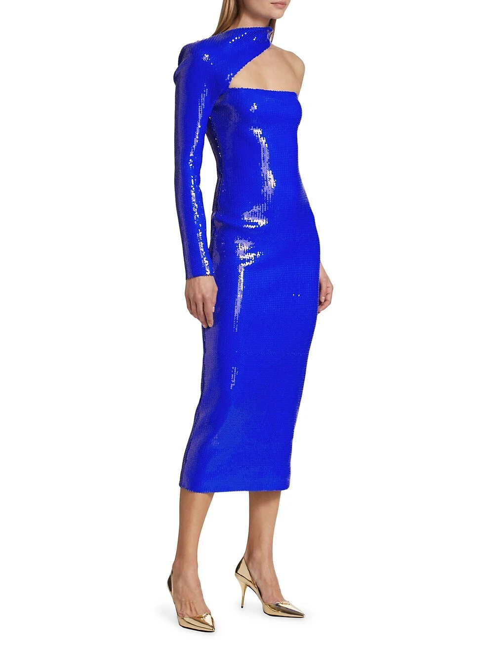 Sequin Asymmetric-Neck Midi-Dress