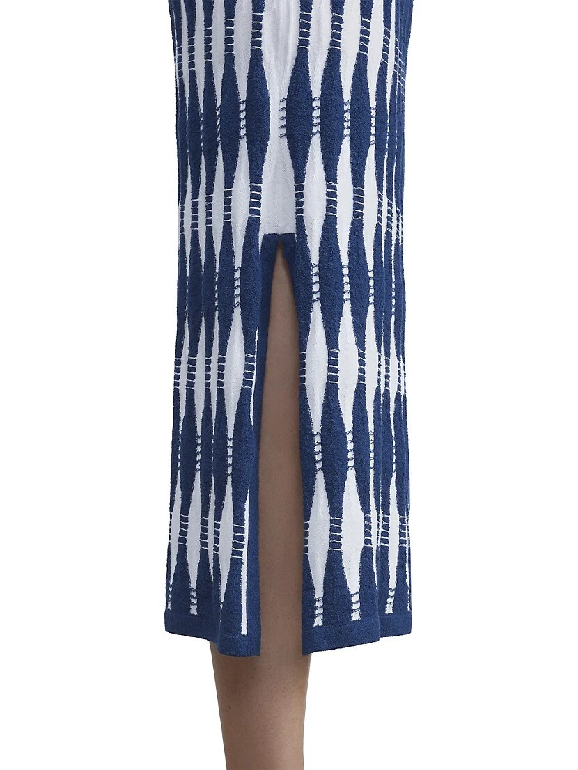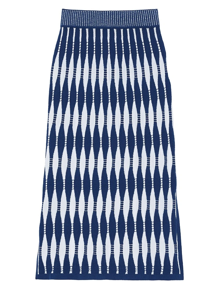 Lafayette 148 New York’s knit midi-skirt offers Shibori-inspired styling and sleek split sides.