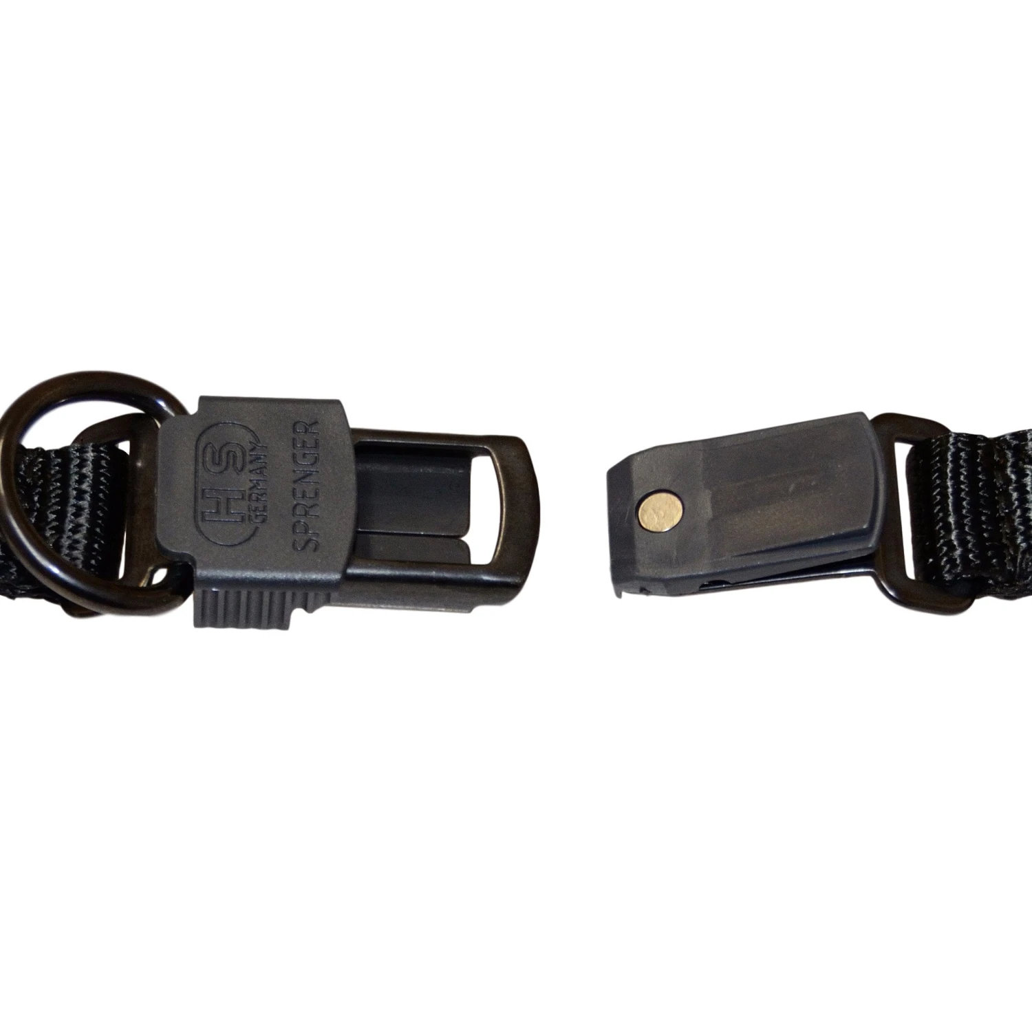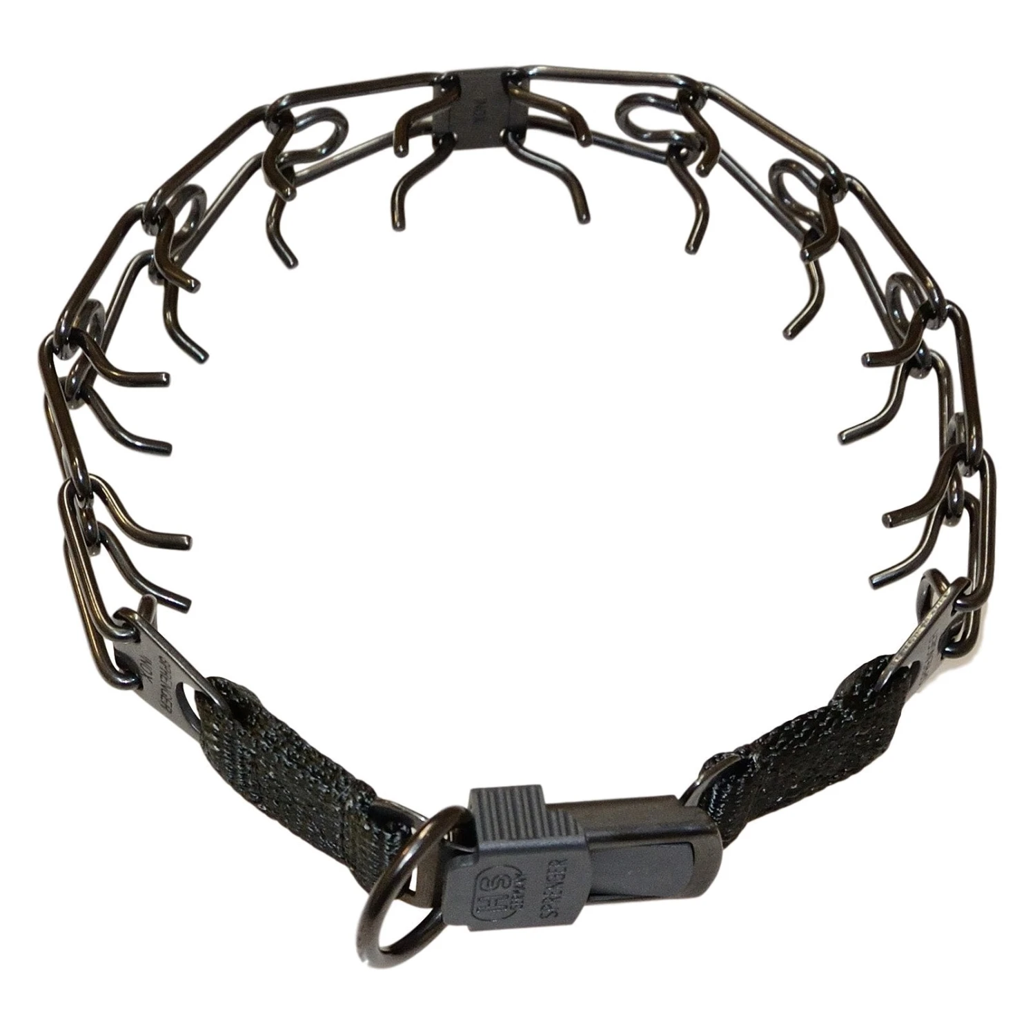 Herm Sprenger prong collars have long been considered the gold standard for prong collars. These collars are made in Germany from high quality stainless steeland anodized black. The black color blends nicely with dark colored dogs and helps reduce the visibility of the prong collar for sensitive environments. Click Lock collars do not have a martingale chain and area instead finished with a secure buckle for easy on and off.